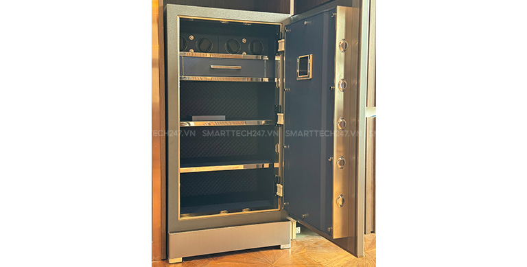 Có lẽ tính năng hiện đại nhất phải kể đến chính là két sắt Philips SBX702-CBO/CBX được trang bị tủ xoay đồng hồ hiện đại. Với những ai yêu thích, đam mê đồng hồ thì việc bảo quản đồng hồ là điều luôn được chú ý đến.