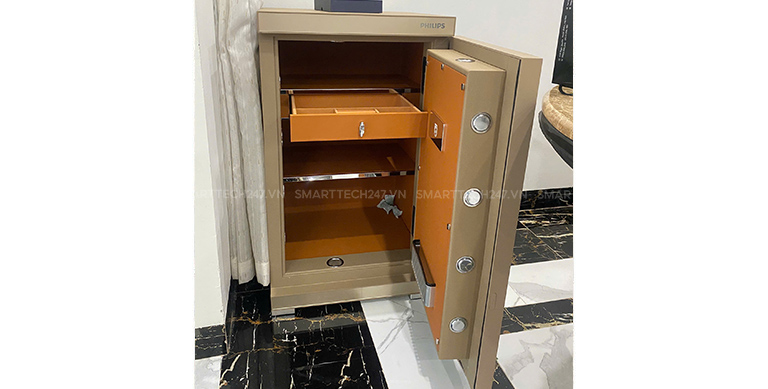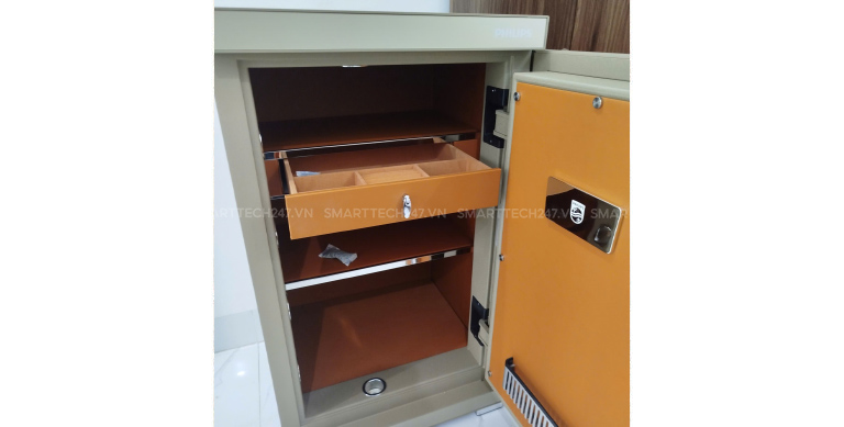 Hơn nữa két cũng sở hữu 1 ngăn bí mật, bạn hoàn toàn có thể lưu trữ tài sản, tư liệu bí mật ở để bảo vệ.