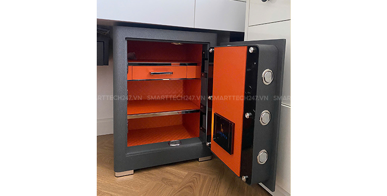 Nhận diện vân tay nhanh chóng: Hệ thống cảm biến hiện đại cho phép nhận diện vân tay chính xác trong chưa đầy một giây, đảm bảo chỉ người được ủy quyền mới có thể mở két. Dung lượng 30 vân tay để người dùng thoải mái lựa chọn cài đặt và sử dụng.