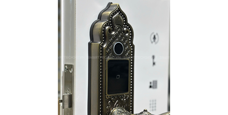 Khóa tân cổ điển Kassler KL-919 Pro được tích hợp công nghệ nhận diện vân tay hiện đại, giúp mở khóa nhanh chóng và an toàn chỉ trong tích tắc. Cảm biến vân tay bán dẫn được thiết kế ngay trên mặt trước của khóa, cho phép thao tác mở cửa thuận tiện chỉ với một chạm, giảm thiểu thời gian chờ đợi. Công nghệ này có khả năng nhận diện chính xác dấu vân tay ngay cả khi ngón tay ướt hoặc dính bẩn, đảm bảo độ nhạy và bảo mật cao.