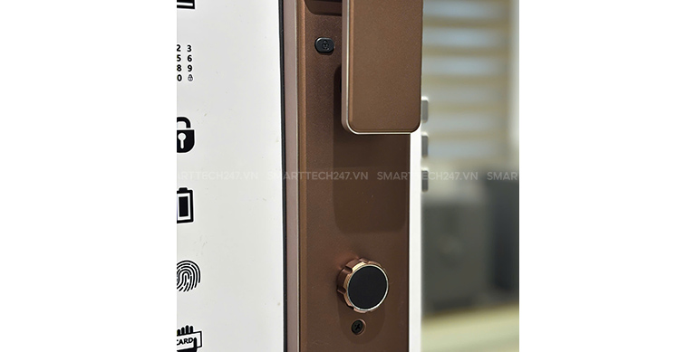 Vân tay bán dẫn FPC: Sử dụng công nghệ nhận diện sinh trắc học siêu nhạy. Khóa có thể lưu trữ đến 100 dấu vân tay, nhận diện chính xác ngay cả khi tay bị khô, mờ hoặc vân tay người già và trẻ em.